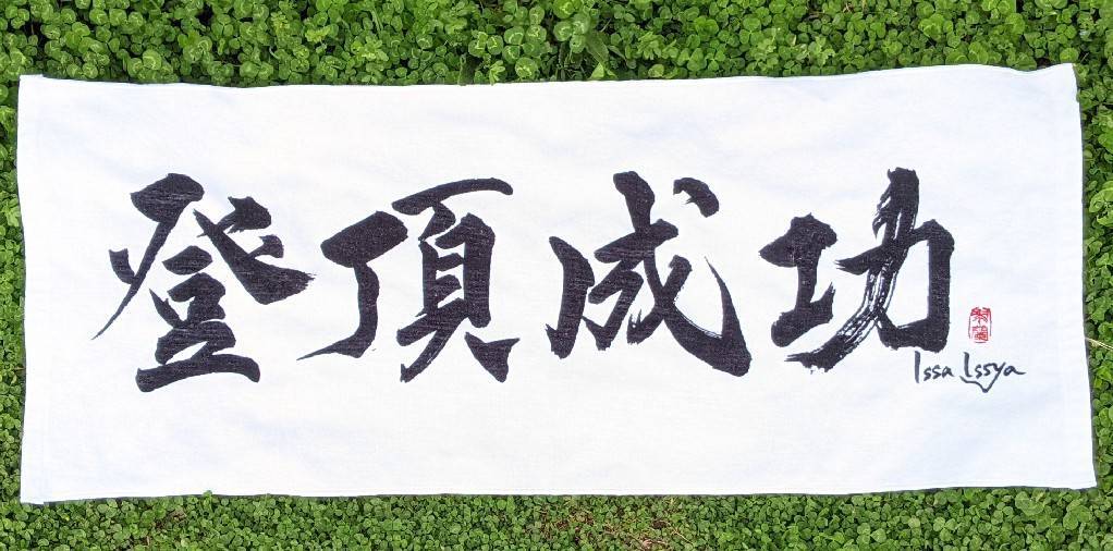 「成」で山頂に到達、「功」で下山と山間を流れる川を表現しています。